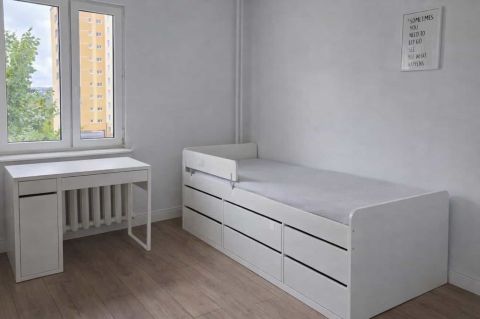 W skład mieszkania wchodzi duży, przestronny salon z wyjściem na balkon, który stanowi idealne miejsce do wypoczynku. Oddzielna kuchnia zapewnia komfort codziennego użytkowania oraz możliwość swobodnej aranżacji.