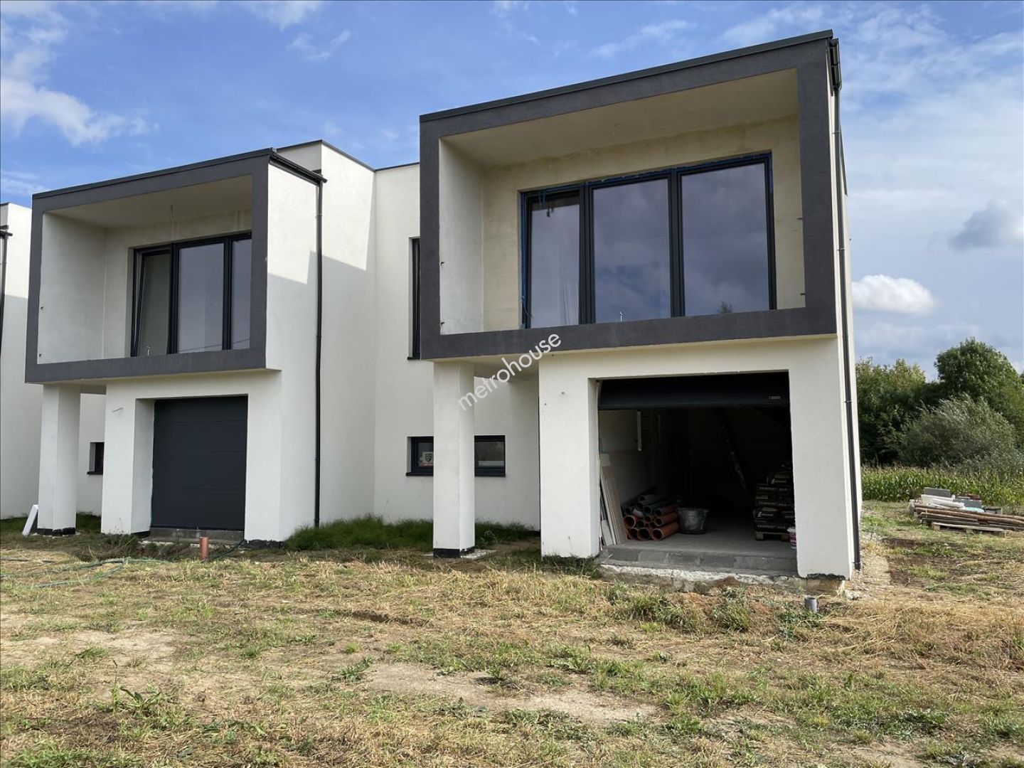Prezentowany dom jest skrajnym w szeregu trzech budynków, z narożną działką.